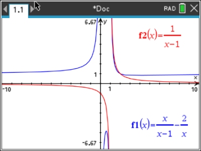 The graphing calculator is a wonderful back-up checking tool to solving rational equations graphically.  This approach is especially helpful in determining extraneous roots.  Consider the examples below.