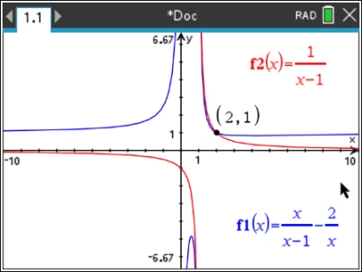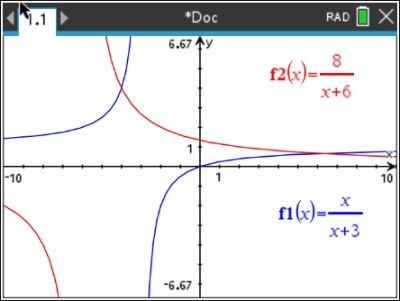 Hint:  When working with rational equations, it may be difficult to "see" the intersection point if the viewing window is a small representation of the graph.