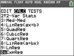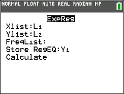 CALC, and arrow down to 0: ExpReg. Hit